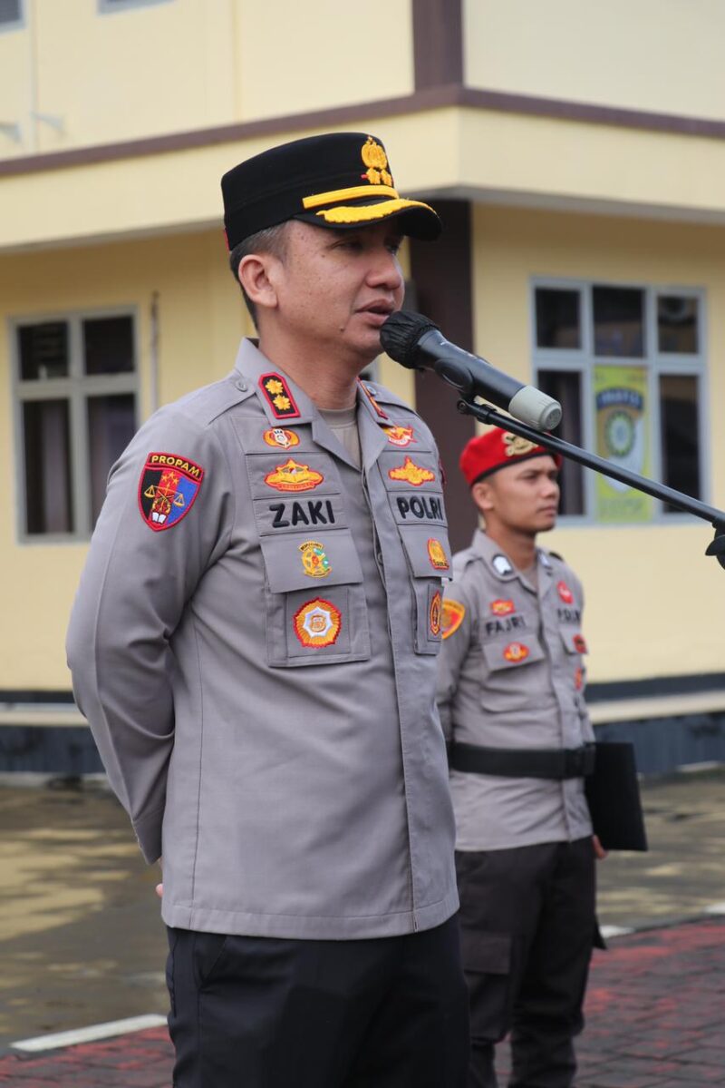 Apinusantara.com – Lebak – Kapolres Lebak Polda Banten, AKBP. Herfio Zaki SIK., SH memimpin langsung apel pagi jam pimpinan di Mako Polres Lebak, dihadapan seluruh jajaran personil Polres Lebak yang dihadiri oleh Para Pejabat Utama (PJU) Polres, Kasat, Kasi Polres Lebak, seluruh personil Polres Lebak dan Aparatur Sipil Negara (ASN) Polres Lebak. Senin (20/1/2025).
