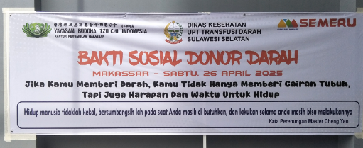 Makassar, Sulawesi Selatan – Sabtu, 26 April 2025, Yayasan Buddha Tzu Chi Indonesia perwakilan Makassar bekerja sama dengan Toko Semeru Alpine Indo Makmur di Jalan Sarappo, Makassar, menyelenggarakan kegiatan bakti sosial donor darah. Kegiatan yang dimulai pukul 09.00 WITA hingga selesai ini mendapat sambutan luar biasa dari masyarakat Makassar, Gowa, dan sekitarnya.