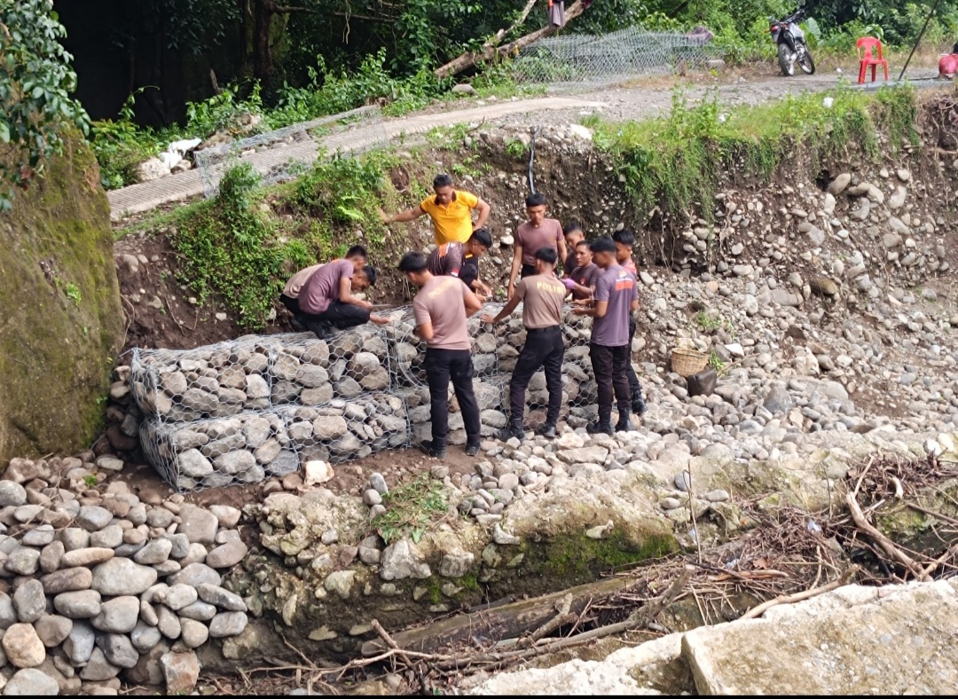 Personel Batalyon B Pelopor Satuan Brimob Polda Sulawesi Selatan melaksanakan pembangunan jembatan darurat di Dusun Pakka, Desa Nepo, Kecamatan Mallusetasi, Kabupaten Barru, Selasa (13/01/2026). Kegiatan ini merupakan bentuk nyata kepedulian Polri terhadap kebutuhan masyarakat, khususnya akses transportasi yang aman dan layak.