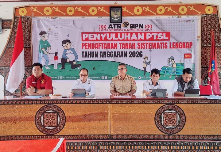 Tana Toraja — Polres Tana Toraja menunjukkan komitmennya dalam mendukung program strategis pemerintah dengan menghadiri kegiatan Penyuluhan Pendaftaran Tanah Sistematis Lengkap (PTSL) Tahun Anggaran 2026 yang dilaksanakan oleh Kantor Badan Pertanahan Nasional (BPN) Kabupaten Tana Toraja di Kantor Kec. Mengkendek, Kab. Tana Toraja, Selasa (20/01/26).
