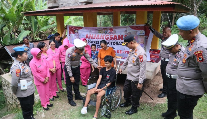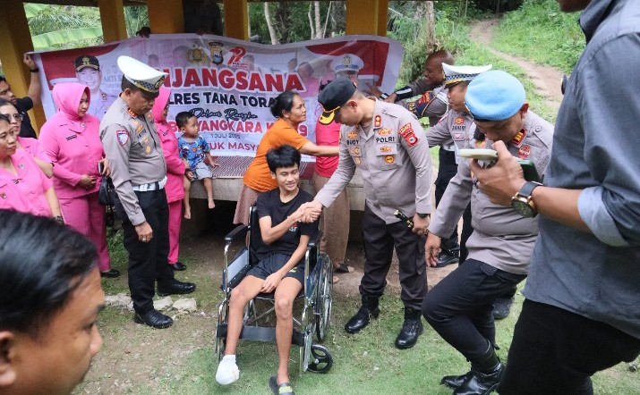 Selain memberikan dukungan moril, Kapolres Tana Toraja juga memberikan bantuan berupa 1 buah kursi roda untuk membantu mobilitas korban selama masa pemulihan.