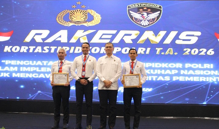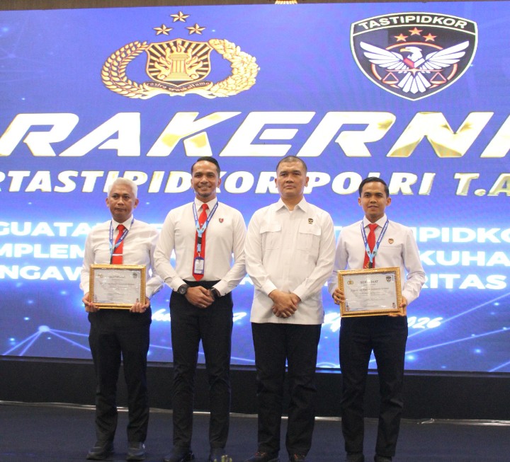 Jakarta – Direktorat Reserse Kriminal Khusus (Ditreskrimsus) Polda Sulawesi Selatan kembali menorehkan prestasi di tingkat nasional. Dalam kegiatan Rapat Kerja Teknis (Rakernis) Kortastipidkor Polri Tahun Anggaran 2026,Ditreskrimsus Polda Sulsel berhasil meraih dua penghargaan bergengsi atas kinerja penanganan tindak pidana korupsi sepanjang tahun 2025.