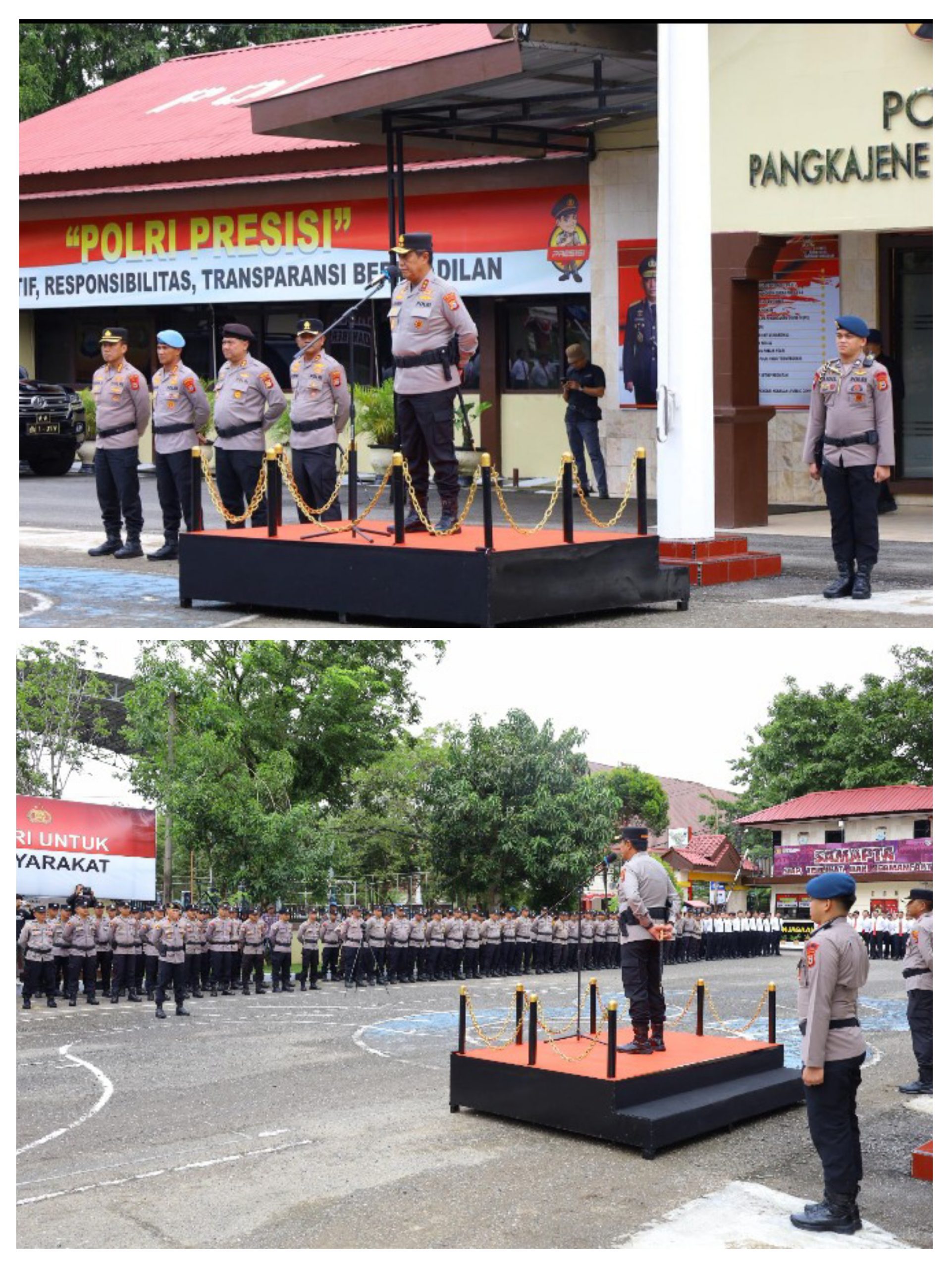 Dalam kegiatan tersebut, Kapolda Sulsel didampingi oleh Kabid Humas Polda Sulsel Kombes Pol. Didik Supranoto, S.I.K., M.H., serta Kabid Propam Polda Sulsel Kombes Pol. Zulham Effendy, S.I.K., M.H. Apel diikuti oleh Kapolres Pangkep AKBP Muhammad Husni Ramli, S.I.K., M.H., M.Tr.Opsla., bersama para pejabat utama Polres Pangkep dan seluruh personel.