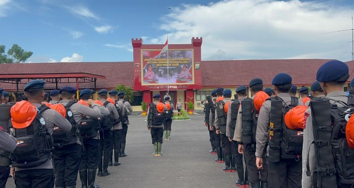 Apel pemberangkatan berjalan dengan tertib dan khidmat sebagai bentuk kesiapan personel Satbrimob Polda Sulsel dalam mendukung tugas kemanusiaan Polri di wilayah Aceh.