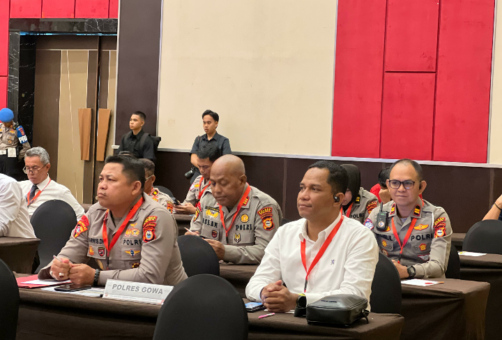 Kapolres Gowa AKBP R.T.S Simanjuntak, S.H., S.I.K., M.M., M.I.K., menghadiri Rapat Koordinasi Lintas Sektoral dalam Rangka Kesiapan Pengamanan Idulfitri 1446 H/2025 yang berlangsung di Hotel Dalton Makassar, Kamis (13/3/2025).