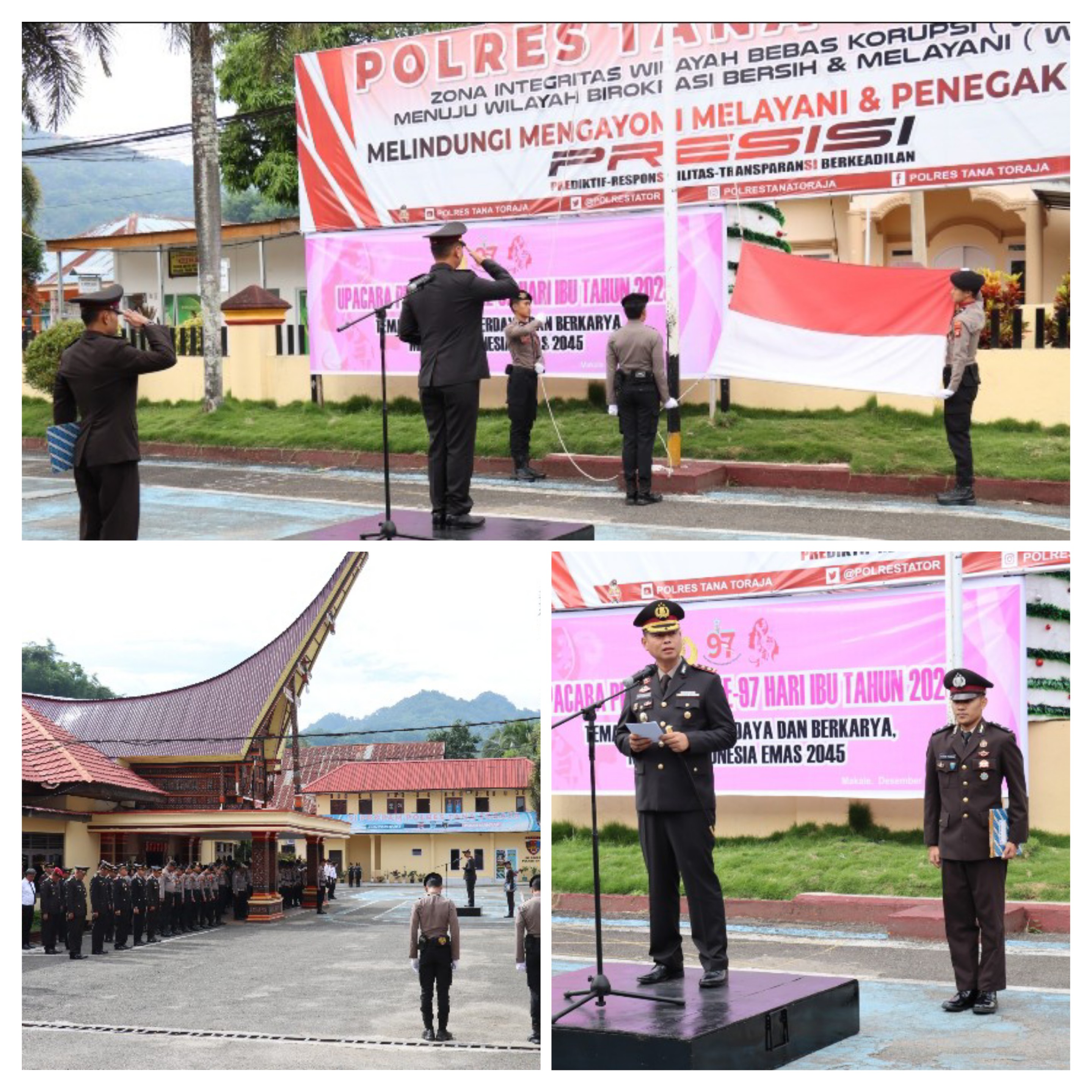 Hal tersebut tercermin dalam upacara peringatan Hari Ibu yang dipimpin langsung oleh Kapolres Tana Toraja, AKBP Budi Hermawan, S.I.K., di Lapangan Apel Polres Tana Toraja Senin (22/12/2025). Kegiatan tersebut diikuti oleh seluruh personel Polres Tana Toraja.