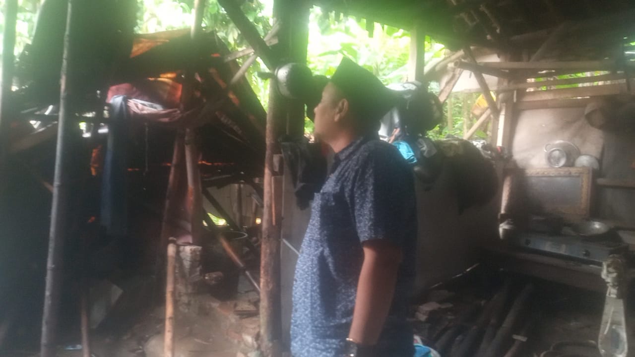 Riki Kepala Desa Tambak Baya langsung tinjau ketempat kediaman fikri meliat kondisi Rumah Dapur yang ambruk,