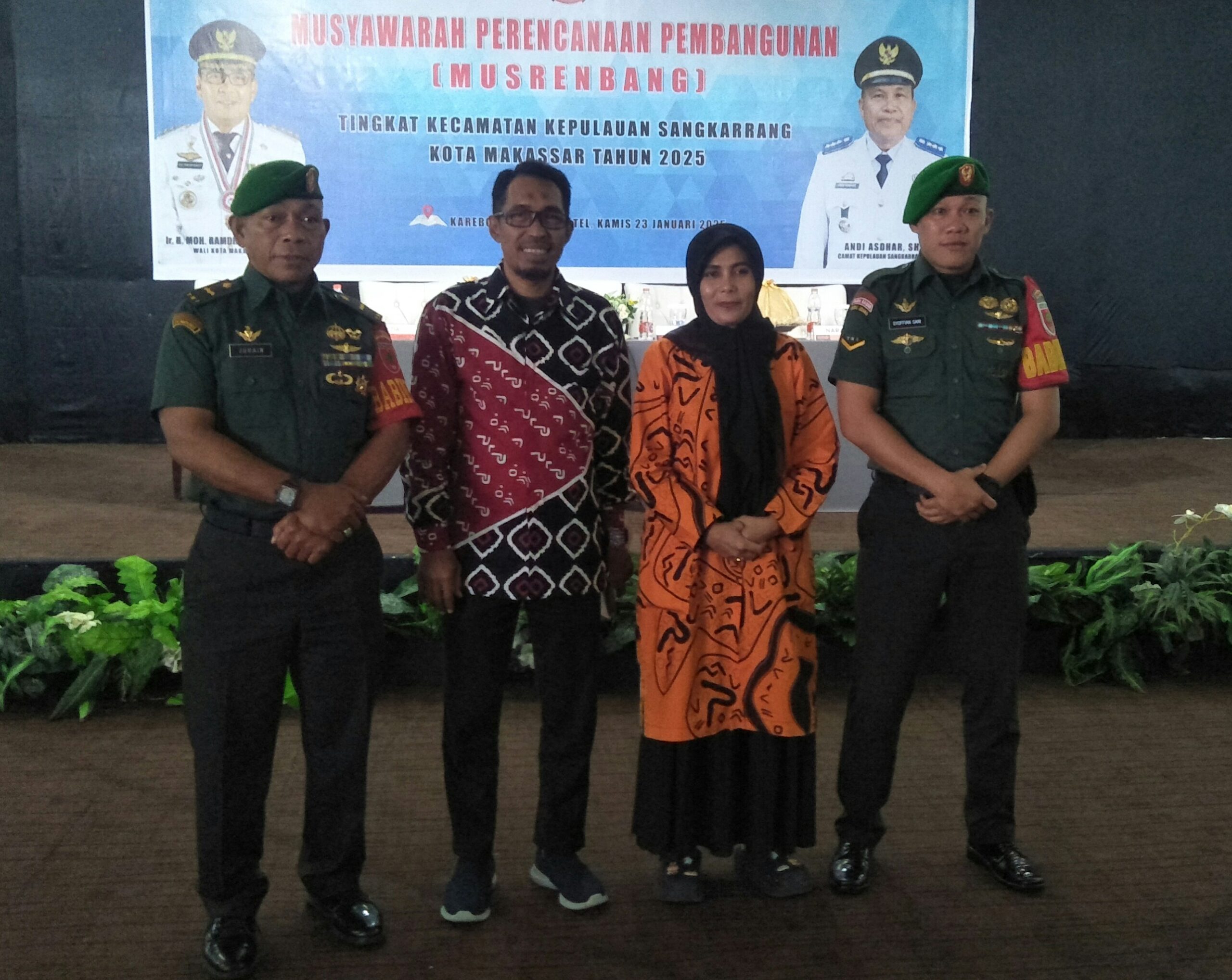 Makassar, 23Januari 2025 – Musyawarah Perencanaan Pembangunan (Musrembang) tingkat Kecamatan Kepulauan Sangkarrang, Kota Makassar, telah dilaksanakan pada Kamis, 23 Januari 2025 di Karebosi Premier Hotel. Acara ini dipimpin langsung oleh Camat Sangkarrang, Andi Asdhar, S.H., dan dihadiri oleh perwakilan dari Walikota Makassar (Asisten 3), Sekretaris Camat (Sekcam) Kepulauan Sangkarrang Siti Subaedah, perwakilan dari Dinas Pekerjaan Umum (PU) Hamka Darwis, Dinas Sosial (Pak Laheru), Bappeda dan Dishub (Anang), Babinsa, Binmas, perwakilan dari tiga kelurahan di Kecamatan Kepulauan Sangkarrang, Ketua LPM Kepulauan Sangkarrang, serta perwakilan RT/RW se-Kecamatan Kepulauan Sangkarrang. Musrembang ini juga membahas Rencana Kerja Pemerintah Daerah (RKPD) tahun 2026 dengan anggaran sebesar Rp1 miliar.
