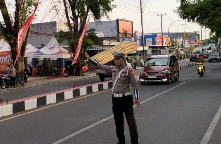 Kegiatan ini dipimpin oleh Aipda Andika bersama Briptu Alfian, dengan fokus memantau arus kendaraan, melakukan pengaturan di titik-titik padat, serta memberikan imbauan secara persuasif kepada para pengendara dan pengguna jalan.