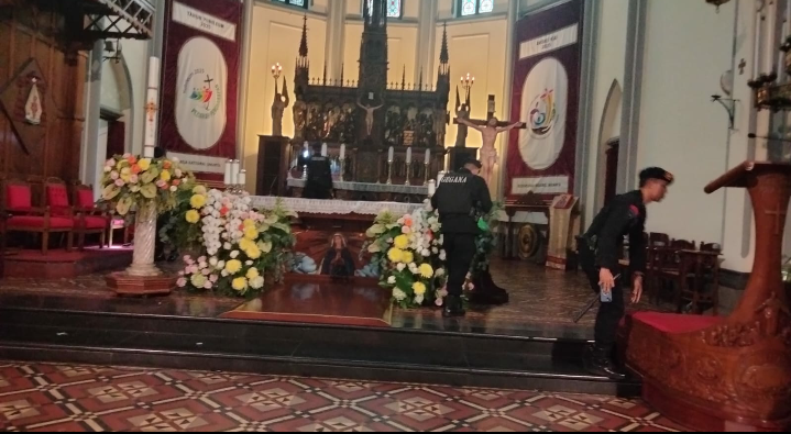 Sterilisasi dilakukan sejak pukul 06.00–07.00 WIB oleh Unit Jibom Gegana Polri, mencakup area dalam dan luar gereja, taman, altar, hingga toilet.