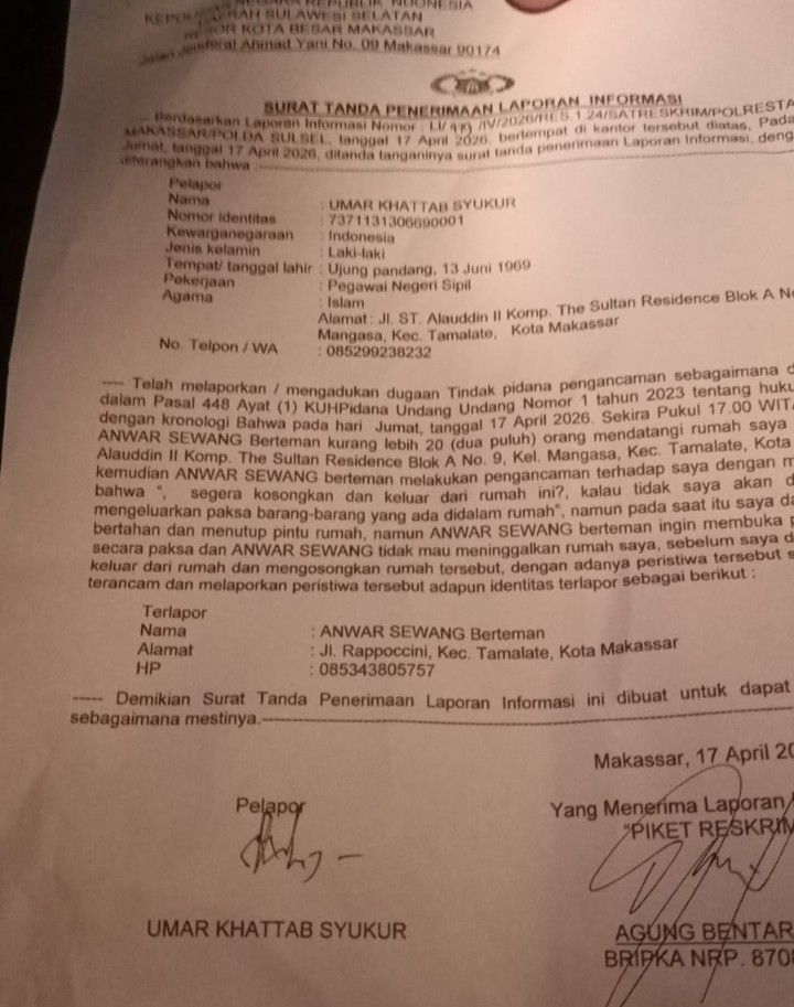 “Laporan awal sempat tidak diterima di Polsek, namun kini sudah diterima di Polrestabes Makassar dan kami berharap segera ditindaklanjuti sesuai hukum yang berlaku,” jelas kuasa hukum.