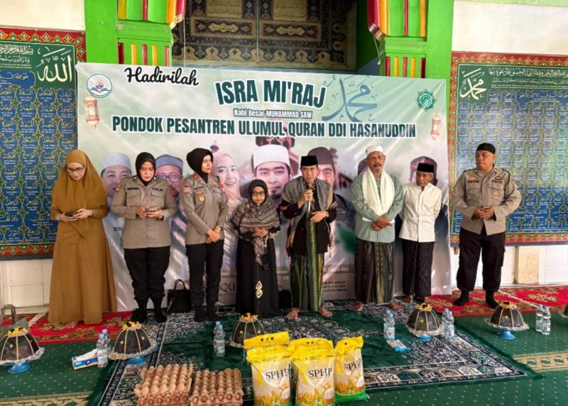 Suasana khidmat menyelimuti kompleks Pondok Pesantren DDI Hasanuddin, Kecamatan Mandai, Kabupaten Maros. Kehadiran Kasat Binmas Polres Maros AKP Ilham Yuliani beserta jajaran disambut hangat oleh pimpinan pondok pesantren, para ustaz, serta ratusan santri yang antusias mengikuti peringatan Isra Mi’raj Nabi Muhammad SAW.