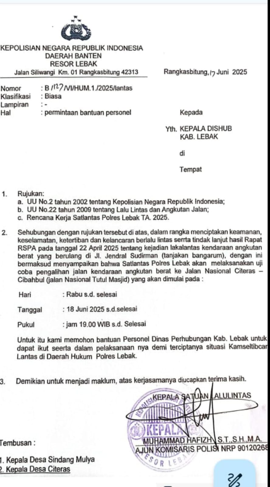 Apinusantara.com- LEBAK – Ratusan warga Desa Citeras, Kecamatan Rangkasbitung, Kabupaten Lebak, menggelar aksi spontanitas pada Selasa, 18 Juni 2025. Aksi ini dipicu oleh beredarnya surat dari Satlantas Polres Lebak yang ditujukan kepada Dinas Perhubungan (Dishub) Kabupaten Lebak.