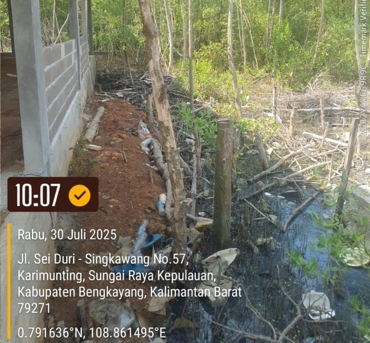 Pantauan di lokasi pada Rabu (30/7/2025) memperlihatkan bahwa lahan yang sebelumnya berupa hutan mangrove telah ditimbun dengan material galian C dan dibangun bangunan semi permanen. Bangunan tersebut digunakan sebagai tempat penitipan kendaraan roda empat milik wisatawan yang hendak menyeberang ke Pulau Lemukutan.