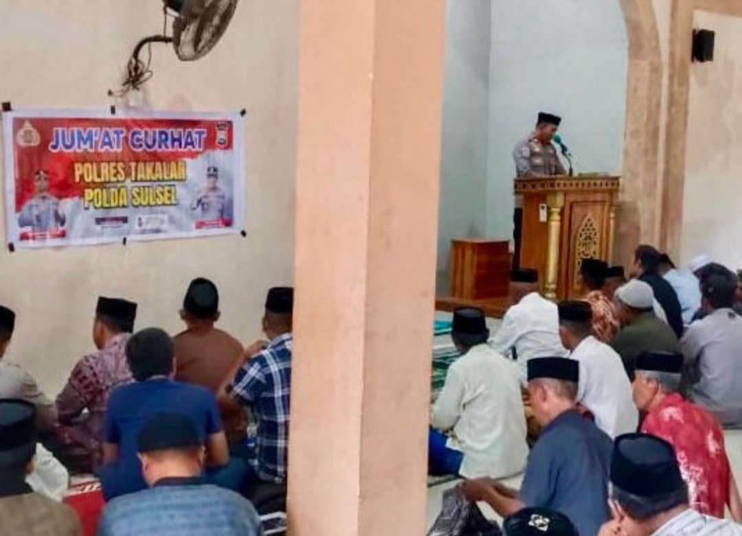 Takalar – Dalam rangka mempererat silaturahmi serta memperkuat sinergitas antara Polri dan masyarakat, Polres Takalar melaksanakan kegiatan Safari Jumat yang dirangkaikan dengan program Jumat Curhat di Masjid Ar Rahman, Desa Bontomanai, Kecamatan Marbo, Kabupaten Takalar, Jumat (9/1/2026) siang.