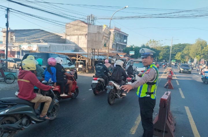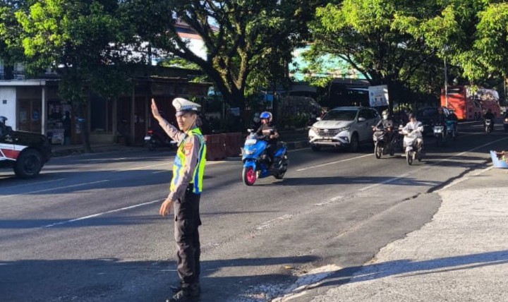 “Pengaturan pagi ini rutin kami laksanakan sebagai upaya memberikan rasa aman dan nyaman kepada masyarakat pengguna jalan, sekaligus mengurai kepadatan arus lalu lintas di jam-jam sibuk” ujarnya, Kamis (16/4/2026).