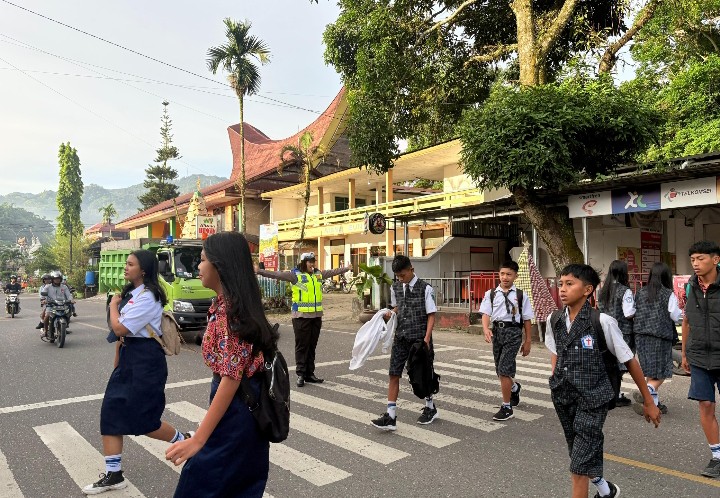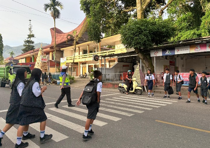 Tana Toraja – Satuan Lalu Lintas (Sat Lantas) Polres Tana Toraja memberikan layanan bagi masyarakat yang beraktifitas di pagi hari. Layanan ini berupa pengaturan lalu lintas dan pengamanan di beberapa titik rawan kemacetan di Kabupaten Tana Toraja, Selasa (27/01/26).