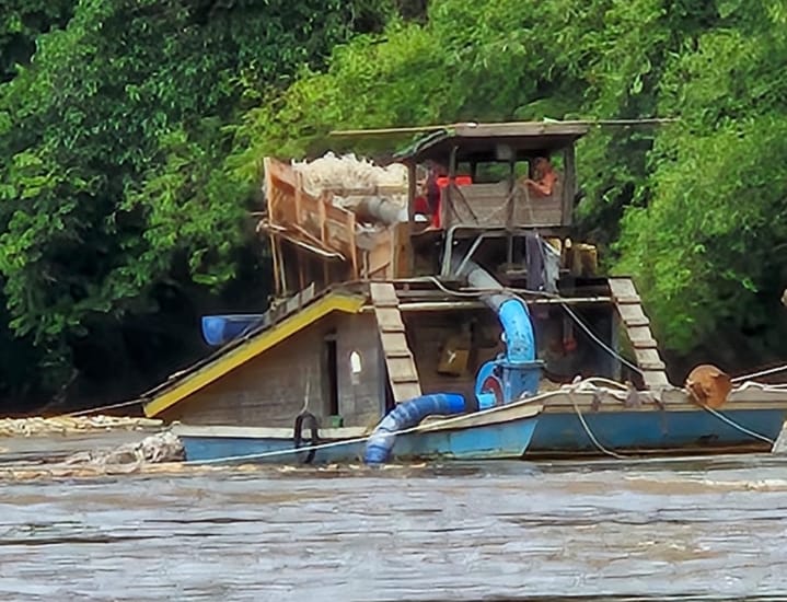 apinusantara.com – Ketapang, Kalimantan Barat | 21 Agustus 2025 –Aktivitas tambang emas tanpa izin (PETI) di aliran sungai Desa Tanjung Labai dan Desa Pandulangan, Kecamatan Hulu Sungai, Kabupaten Ketapang, masih berlangsung tanpa tersentuh aparat penegak hukum (APH). Temuan investigasi awak media pada Kamis (21/8) mendokumentasikan langsung aktivitas pertambangan ilegal tersebut.